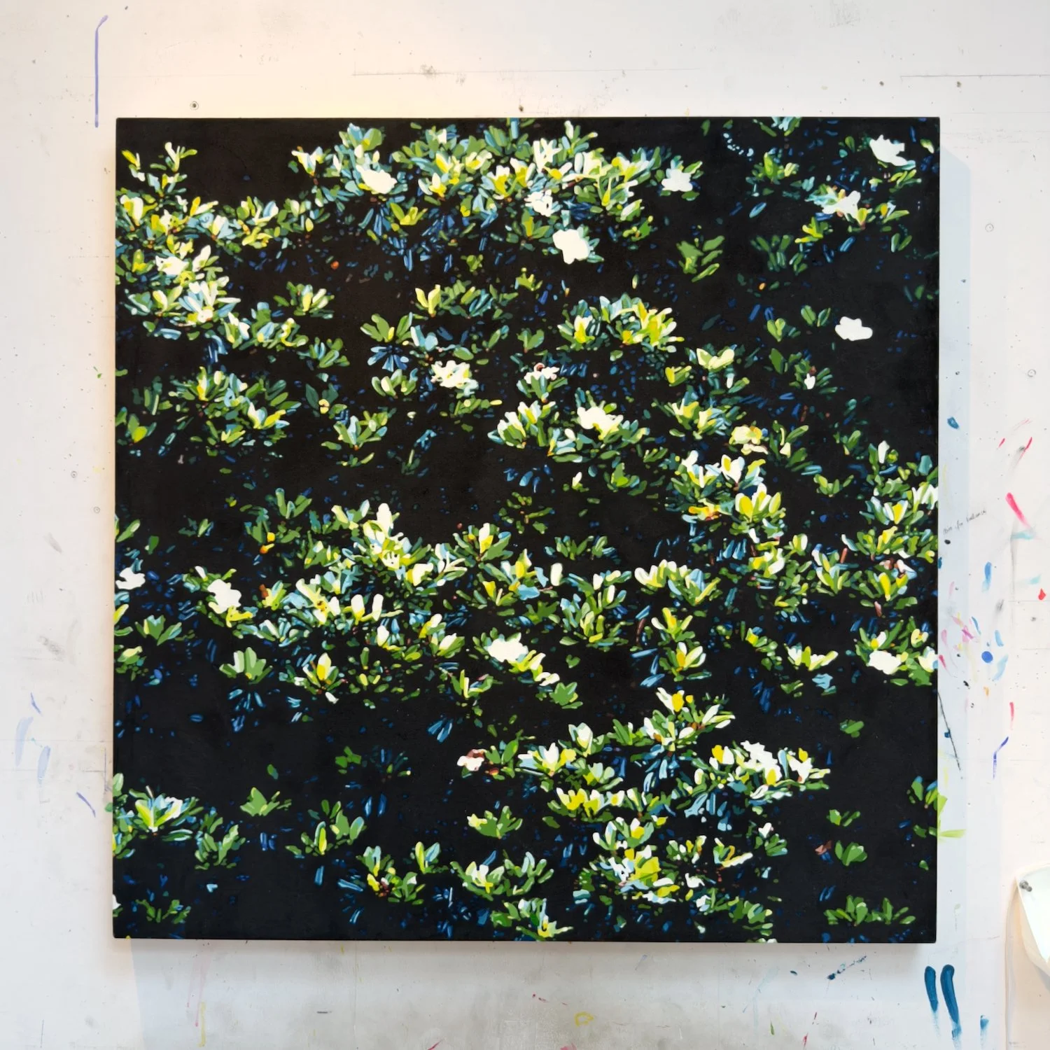 I photographed this tree back in 2017, thinking I’d wrap up its painting in a month or two, but that’s not what happened. I used to delude myself into believing that these grand projects could be completed in a few grindstone weeks, but those efforts were never successful. Instead, I ended up sidestepping this painting repeatedly in favor of other projects, intimidated by the magnitude of work involved to get it across the finish line, and so it was moved from studio to storage, sitting in wait for many seasons.